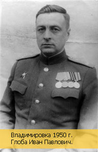 В 1946 г. наша семья Глоба (Иван Павлович, Галина Павловна, Людмила, Татьяна) жили в Москве, поскольку с 1944 по 1946 гг. папа являлся начальником штаба 11-го отдельного полка связи особого назначения ВВС КА Московского военного округа. До войны он окончил Ульяновское военное училище связи и Военно-электротехническую Академию РККА имени С.М.Буденного. У него за плечами были две войны (финская и Великая Отечественная). Папа был участником Сталинградского сражения, участвовал в освобождении г.Ростова-на-Дону. Он награжден двумя орденами «Красной Звезды», орденами «Красного Знамени» и «Отечественной Войны», 16-ю медалями и 8-ю памятными и юбилейными знаками. Особо можно отметить медали боевые заслуги”, оборону Сталинграда”, победу над Германией в Великой Отечественной Войне 1941-1945гг.” и “Ветеран вооружённых сил Приказом Главкома ВВС ВС СССР № 01242 от 25.10.1946 г. отец был назначен сначала старшим офицером, а в мае 1947 г. начальником отдела связи 2-го Управления Государственного центрального полигона МВС СССР. Много военных специалистов в то время получили назначения, связанные с созданием полигона для проведения испытаний ракетной техники.