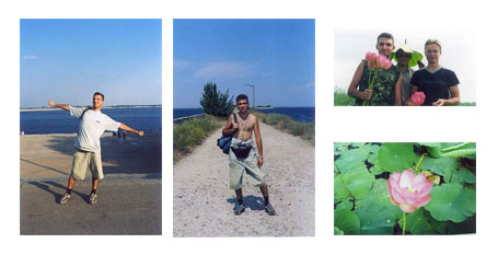 Итак, решено, этим летом мы едем отдыхать на Волжское Понизовье. План был следующий: поездка на турбазу в Камызякском районе, после этого отдыхаем в южном граде - Астрахани, и если остаётся врем, заезжаем на денёк в Волгоград (по моим расчетам на то, чтобы показать моим московским друзьям достопримечательности города одного дня более чем достаточно, сам я на них уже успел насмотреться!). Приключения начались уже в поезде: билеты нам удалось достать только в плацкарт 5-го поезда. Как назло нам попалось купе, в котором окно являлось "аварийным выходом", и поэтому открывалось оно единственным способом: дёрнув за рычаг и выдавив стекло :-). Короче, в нашем купе не дуло, так что в дороге мы не простыли. Да ещё и проводник наотрез отказался включать вентиляцию, объяснив это тем, что или работает титан, или вентилятор, который как сказал проводник, "нафиг не нужен, так как за окном ещё жарче, чем в вагоне". Хорошо, что хоть ближе к вечеру, когда за окном закончились степи и началась зелень дельты Волги, стало немного попрохладнее. К моему удивлению, москвичи довольно спокойно вынесли жару, но это были только цветочки :-).